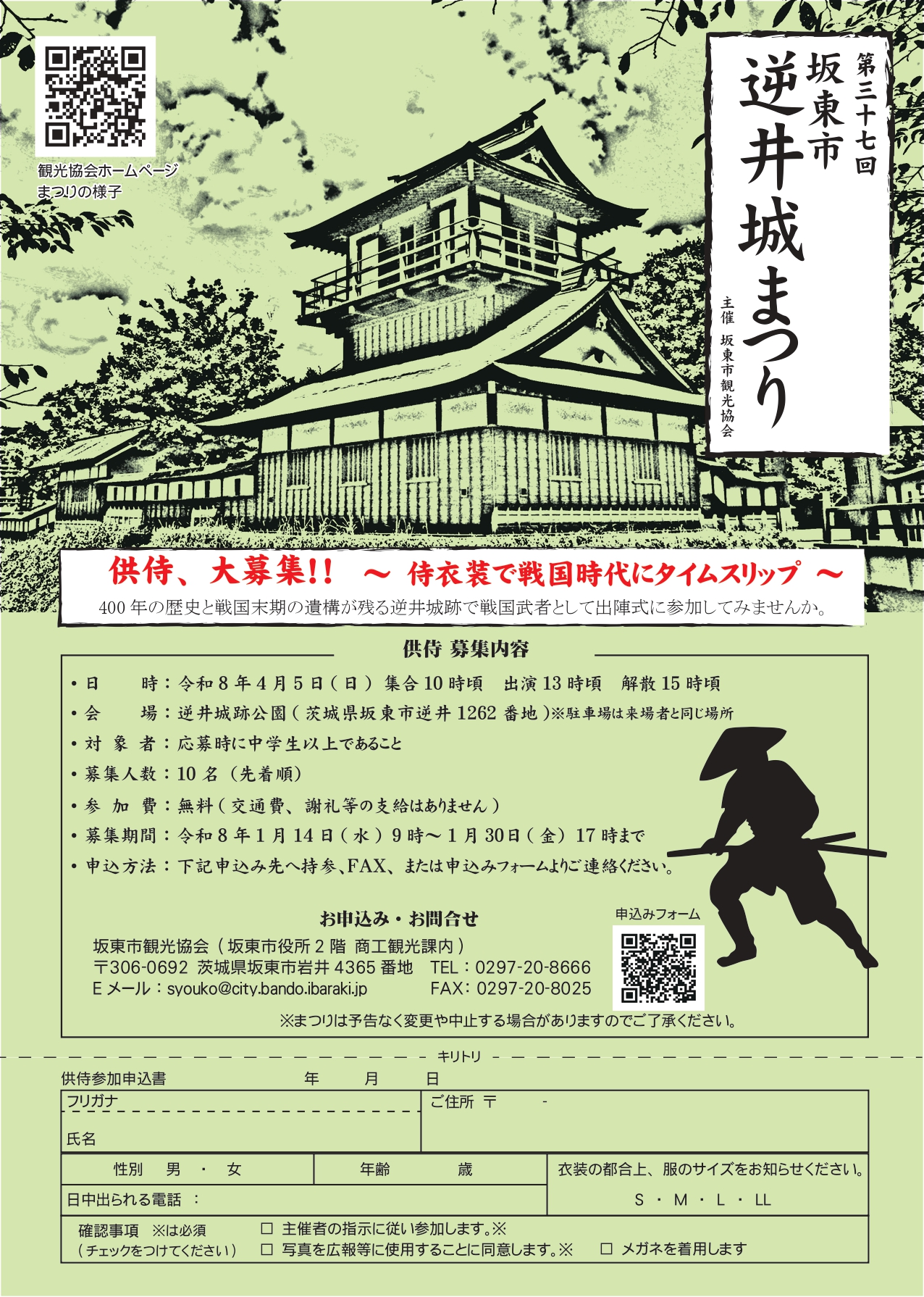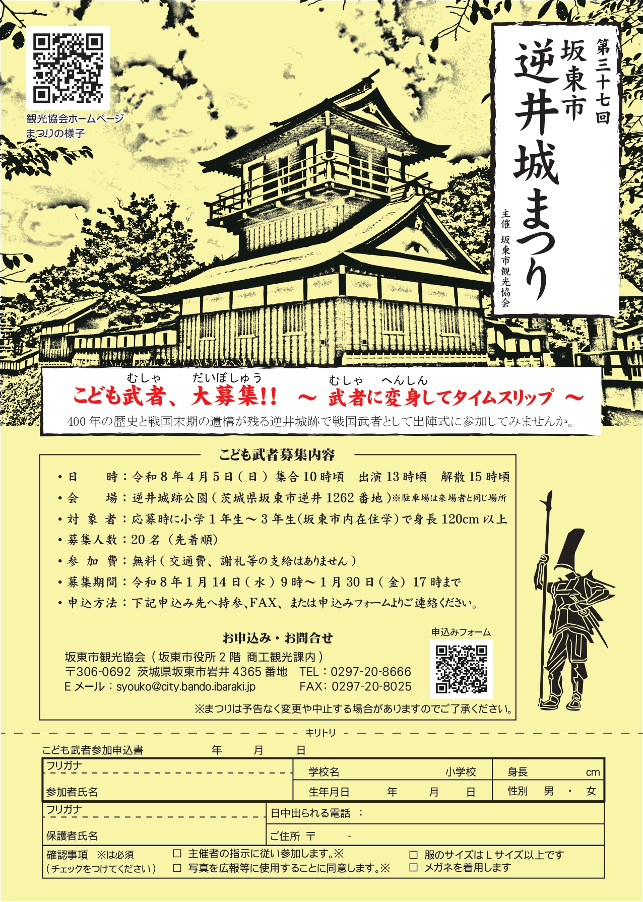 逆井城まつりでは出陣式に参加いただく「こども武者」、「供侍」を募集します。
